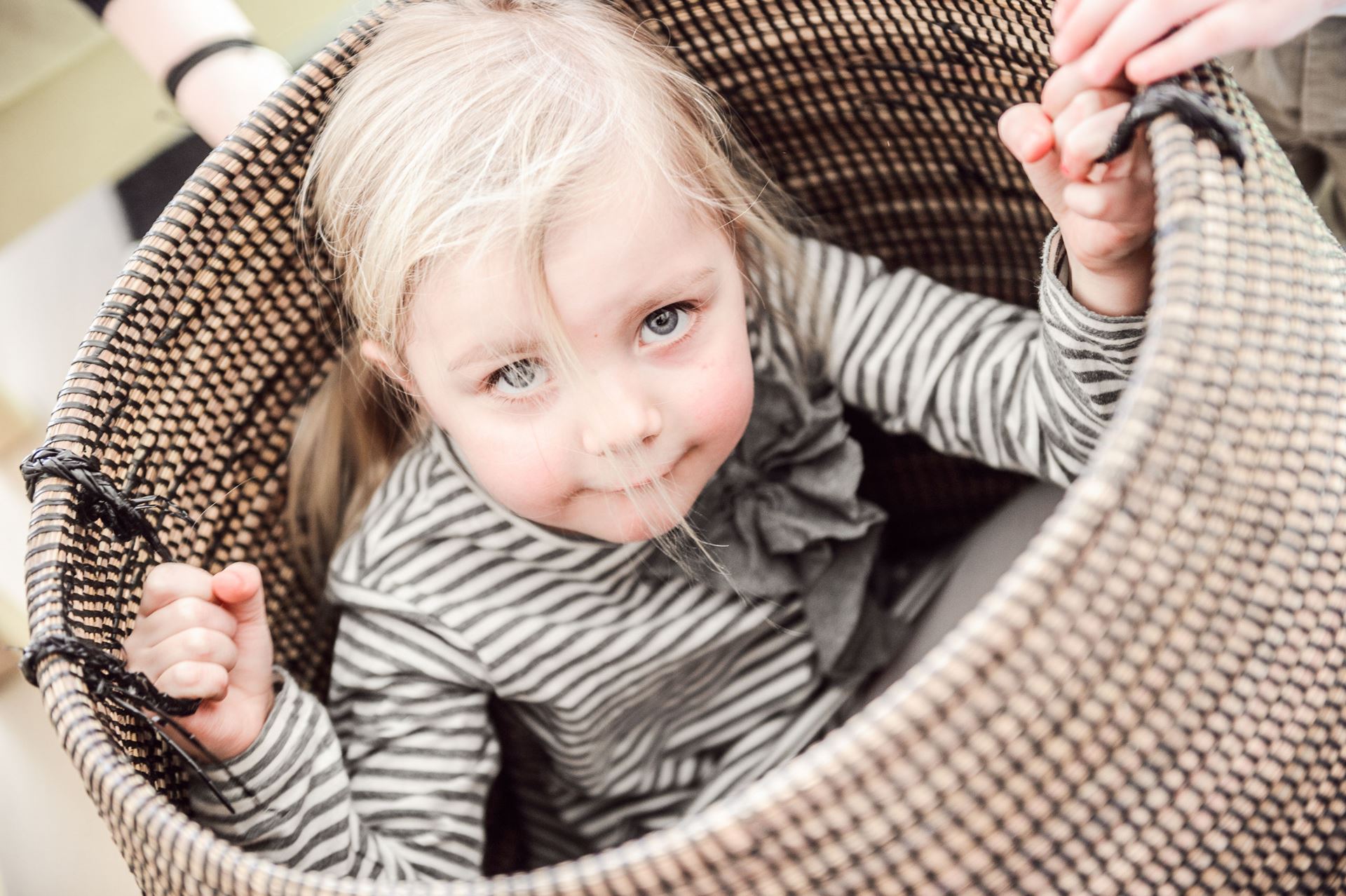 To uzglabāšanai var izmantot arī jau klasiskus risinājumus. Tie ir stilīgi pīti grozi vai uzglabāšanas kastes, kas pielāgotas mājas interjeram. Novietojiet tos plauktos, kumodes atvērtajās vietās, glabājiet tos zem galda blakus krēsliem. Tādā veidā jūs vajadzības gadījumā ātri sasniegsiet šīs vietas un, piepildot tās ar bērnu lietām, saglabāsiet interjera harmoniju un estētiku.