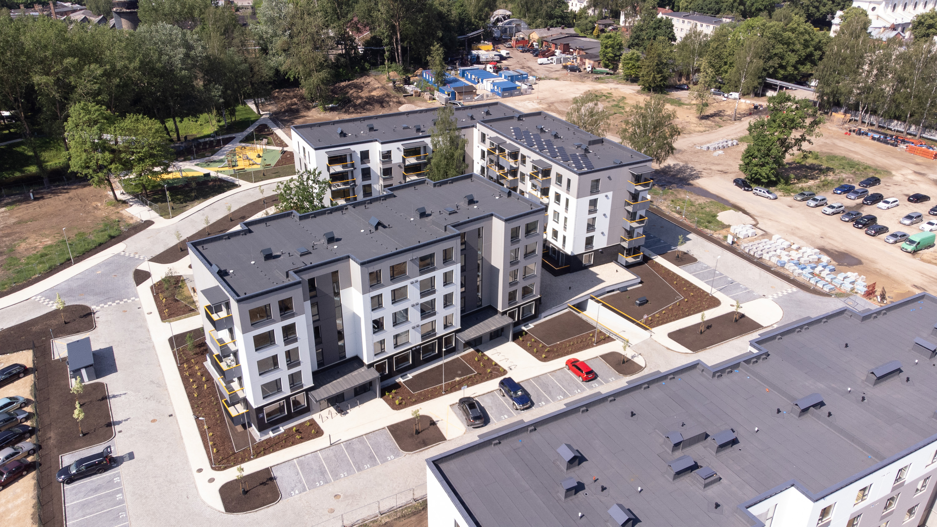 Auto plūsma, stāvvietas un citas komunikācijas organizētas ap kvartāla ārpusi, lai saglabātu pagalmus kā zaļu, labiekārtotu un drošu zonu bērnu rotaļām, pastaigām un sporta aktivitātēm. Tomēr pagalmi nav tikai vieta, kur patverties no kņadas - tā ir sociāla telpa, kurā iespējamas gan plānotas, gan negaidītas tikšanās ar kaimiņiem, draugiem un domubiedriem.