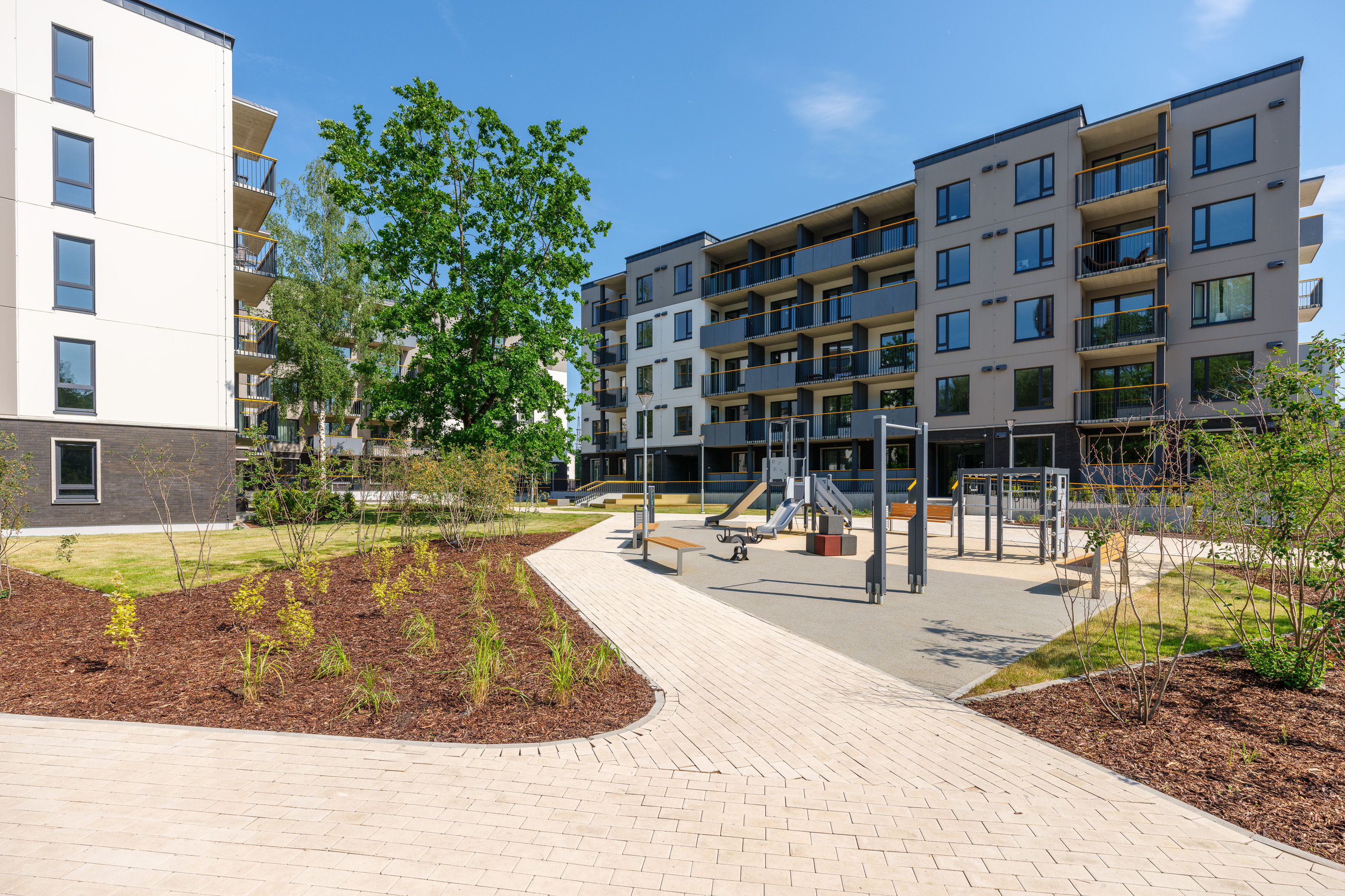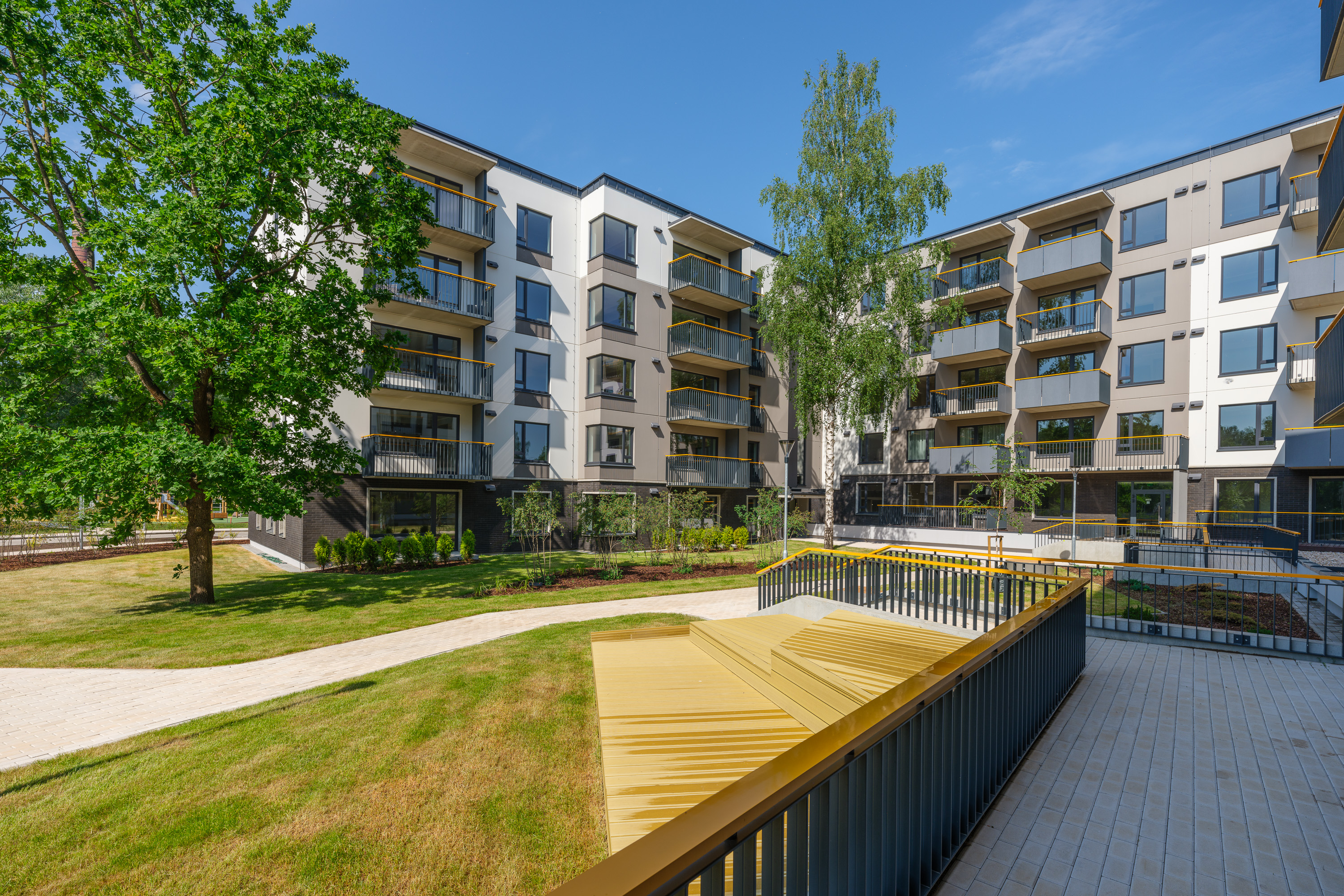 Dzīvojamā kompleksa Mārpagalmi labiekārtojums - 3. vieta Ilgtspējīgākais teritorijas labiekārtojums 2025 konkursā Ilgtspējība arhitektūrā, būvniecībā, dizainā Baltijā