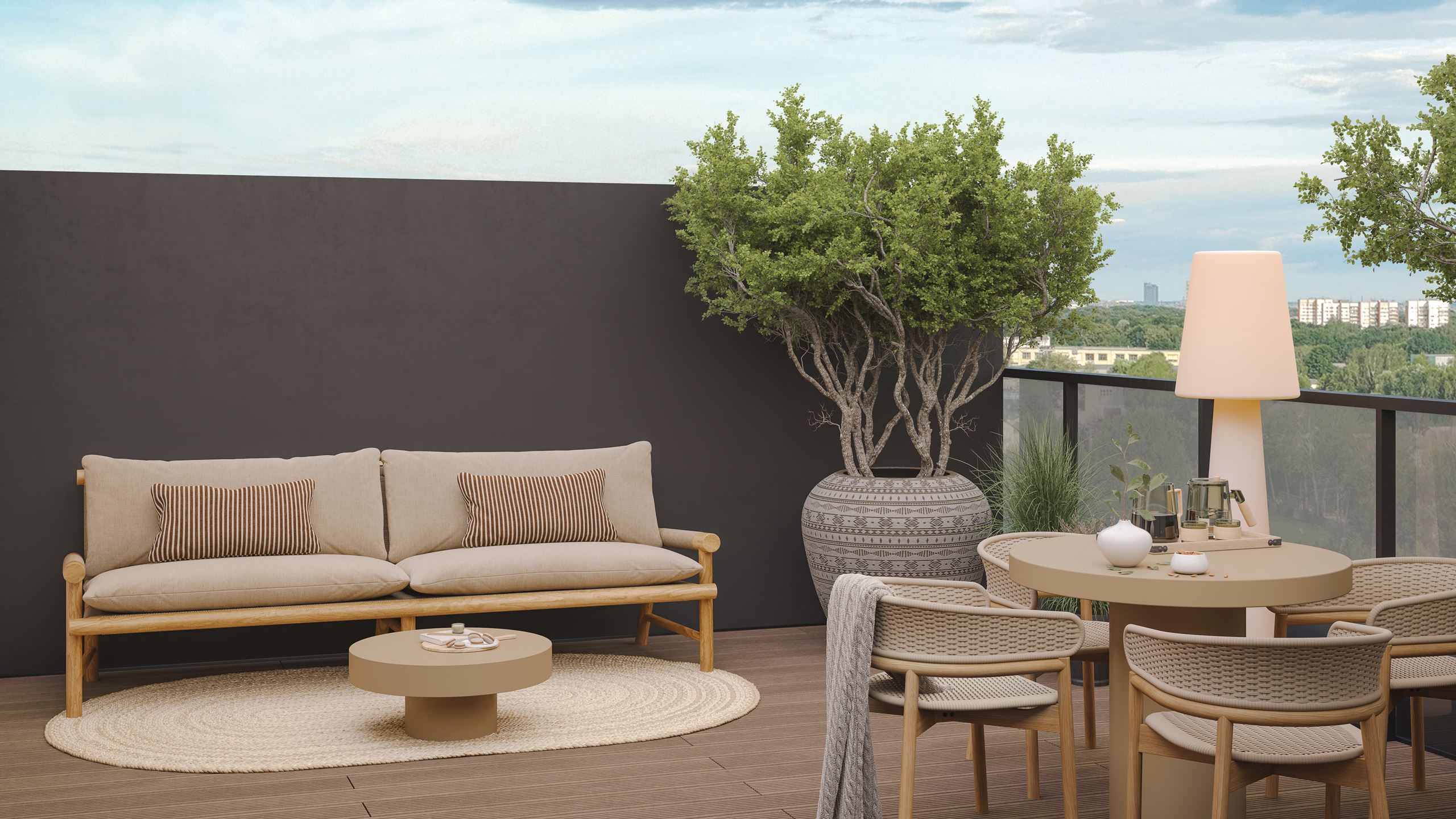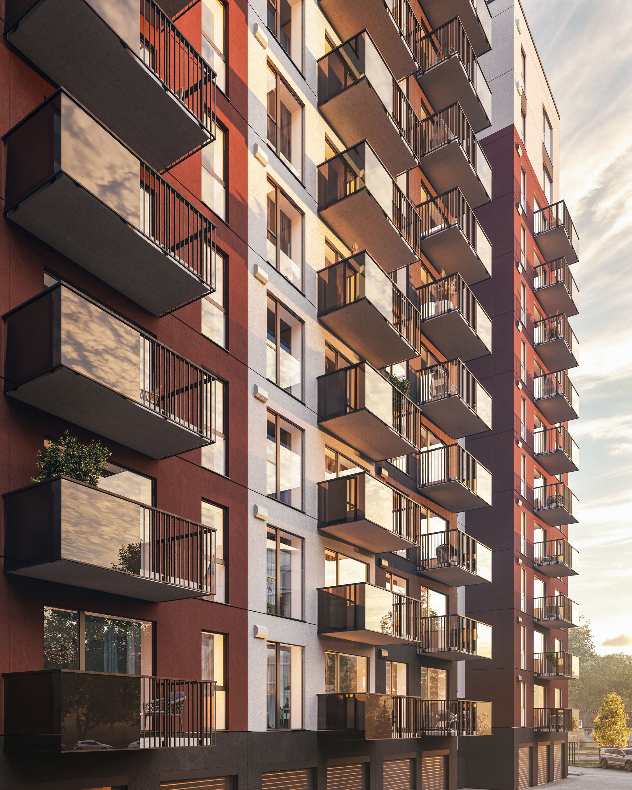 12.stāvā pieejams unikāls dzīvoklis ar divām terasēm un skatu trīs virzienos, bet 13.stāvā atrodas tikai četri, īpaši plaši dzīvokļi ar skatu pāri koku galotnēm. Projektā pieejamas 55 noliktavas, 49 autostāvvietas un plaša, droša teritorija. Līdzās esošā vilciena stacija un sabiedriskā transporta tīkls nodrošina ērtu mobilitāti. Elegantie arhitektūras risinājumi, funkcionālie dzīvokļu plānojumi, un plašie logi ar skatu uz pazīstamo Zolitūdes saulrietu veido harmonisku telpu, kurā saplūst miers, kārtība un estētika.
